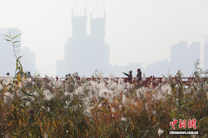 图为市平易近玩赏怒放的芦荻花。中新社记者 弛畅 摄